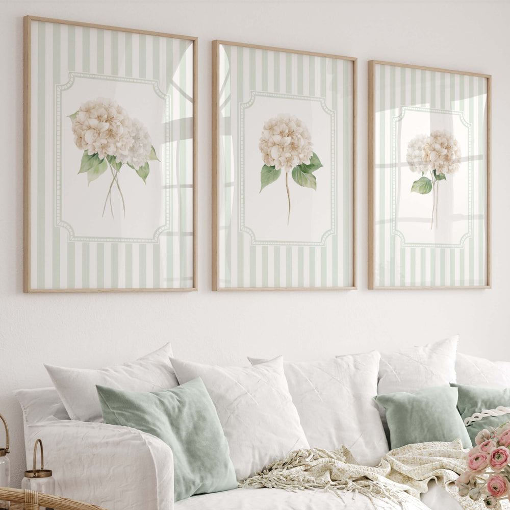 Beige Hydrangea Wall Art Set of 6 Printable Botanical Sage Green Stripe Floral Prints